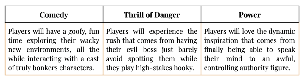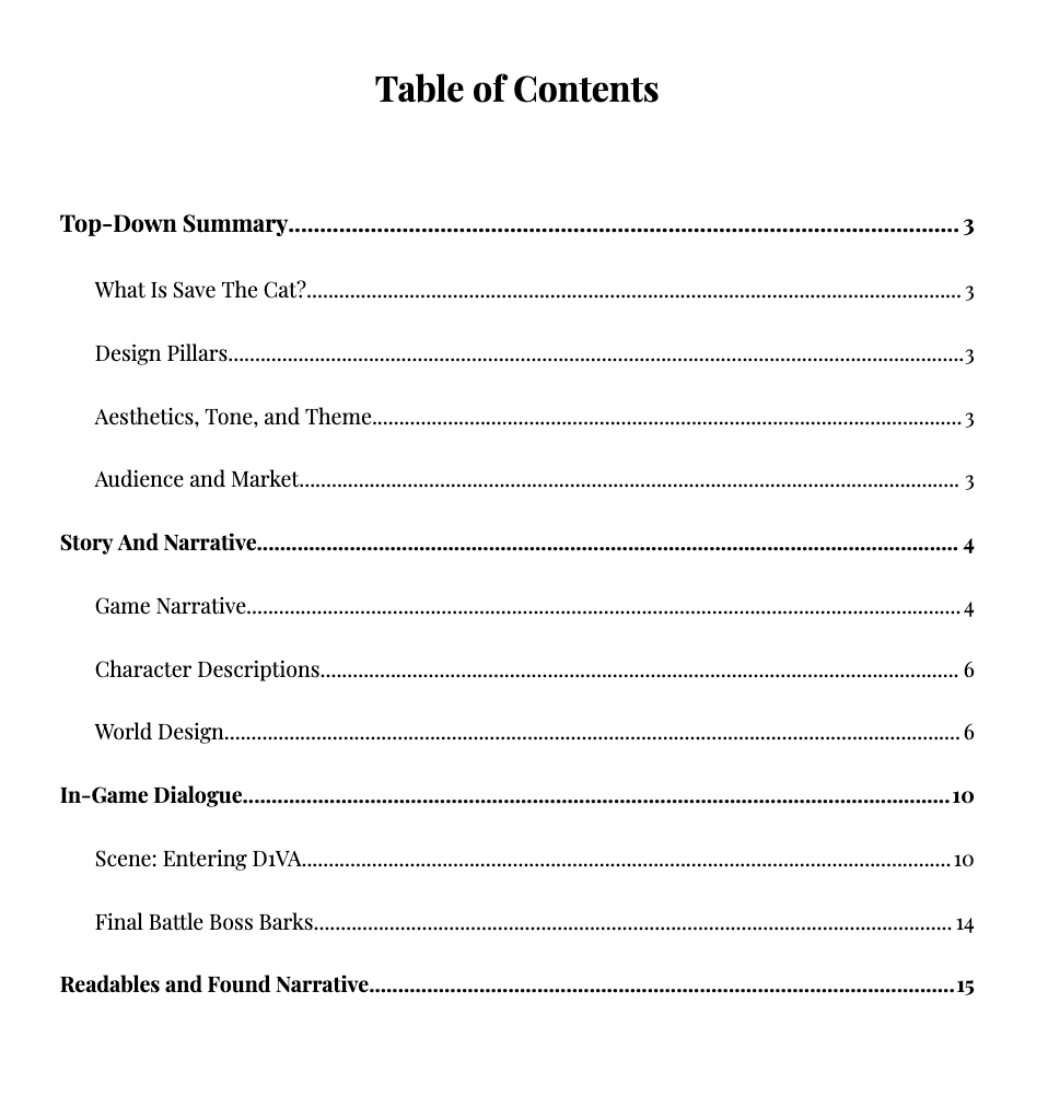 - Concise Plot: I knew if the design document had too much detail, it would overwhelm the reader. I had to keep the plot clear and simple.